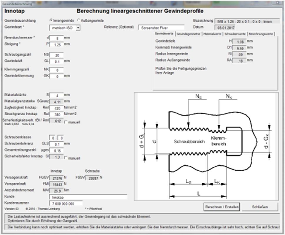 Material Gewinde / Einschraubtiefe Gewindeversagen Innotap®
